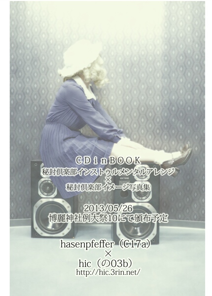 今回はhasenpfefferさんと合同で制作し、秘封楽曲のインストゥルメンタルアレンジを収録したCDと写真集のセットとして頒布する予定です。